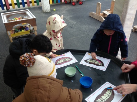The children practised brushing teeth with toothpaste and toothbrushes and shared with their friends how they do it at home with their parents.