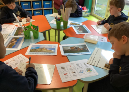In History, children worked in groups to explore a range of castle images as secondary sources - looking at the similarities and differences of them.