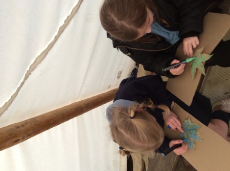 This week in forest school the children learnt about how the veins and capillaries transport water around a leaf. The children examined leaves carefully to look for the veins and capillaries and traced these.
