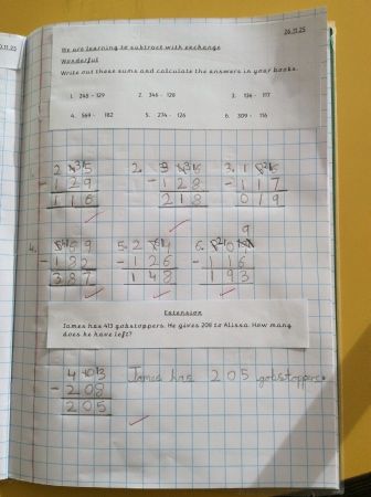 This week 3FW have been learning to subtract with exchange, using the formal written method.