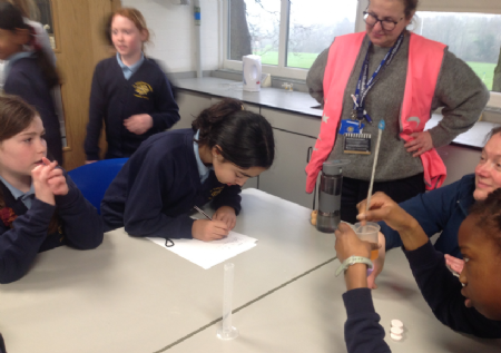 Yr5 children visiting the chemistry labs at QE Boys for Science week.