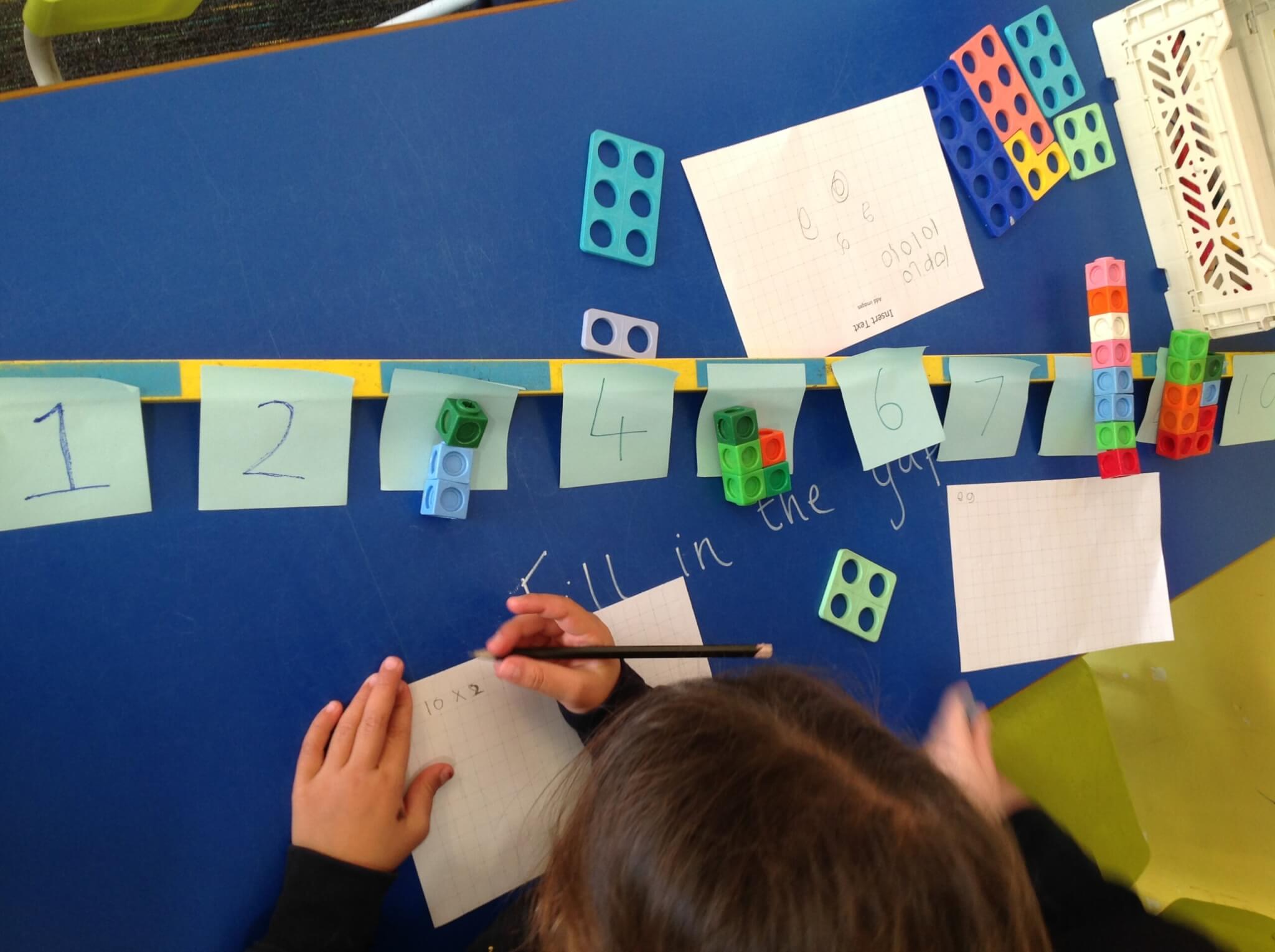 In maths, the children filled in the gaps on a number line and represented the numbers using cubes.