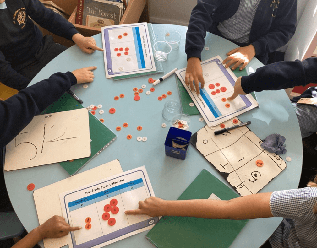 In Maths, we used place value charts and counters to create and compare three-digit numbers. We discussed the variety of ways numbers could be presented.