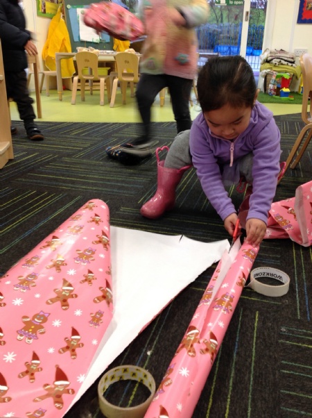 This week we opened a Christmas workshop in our nursery. The children had a great time building their own toys with blocks, wrapping them in festive paper and measuring the presents.
