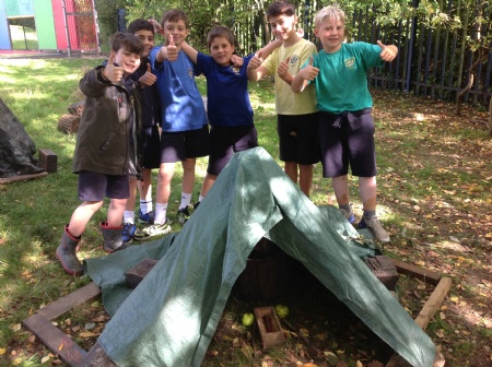 This week in forest school, the children worked together to create their own pyramid using outdoor resources for their structure.