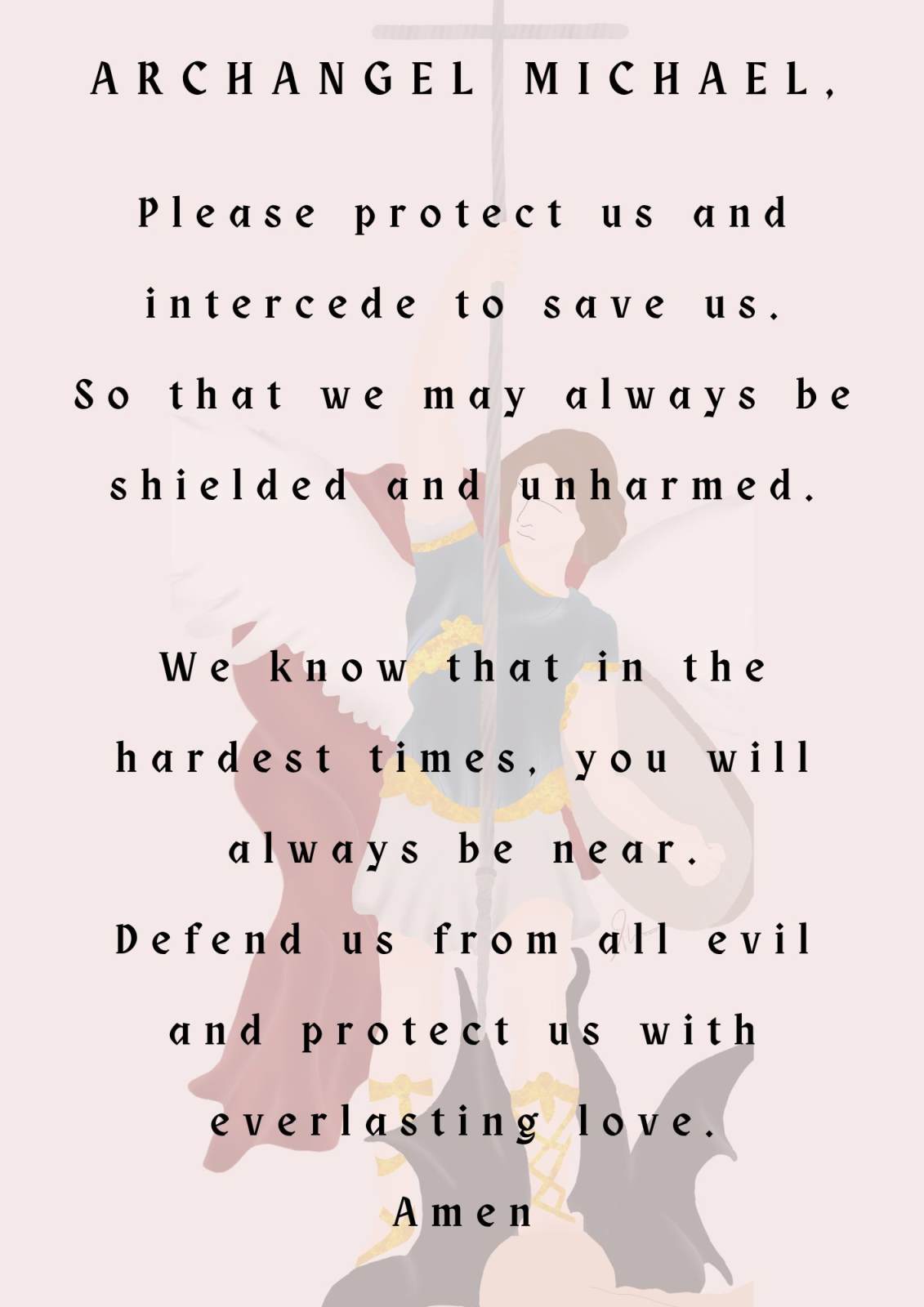 Saint Michael is our protector; we ask him to come to our aid